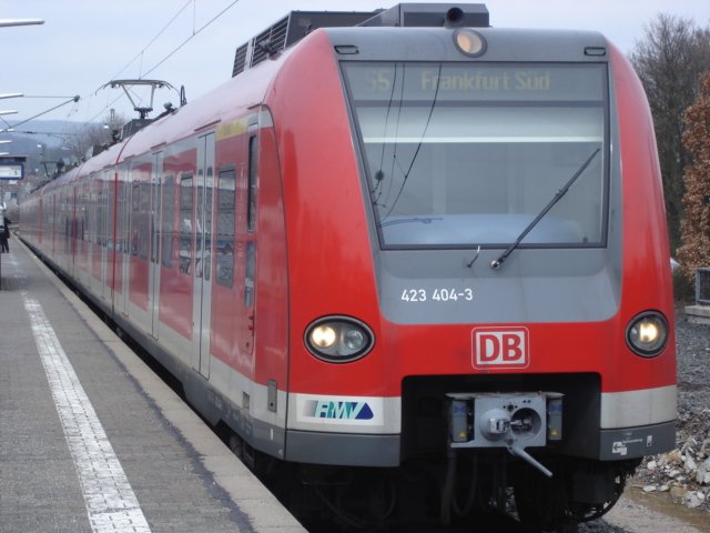 423 404-3 steht am 13.April 2006 abfahrtbereit als S5 in Friedrichsdorf. Die Fahrt geht nach Frankfurt-Süd.
