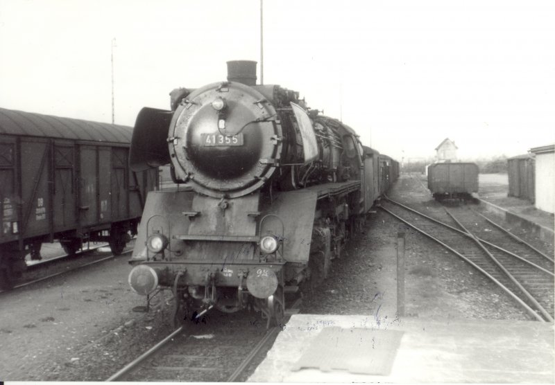 Am 01.04.1961 begang meine Jungwerkerausbildung bei der DB im Bahnhof Rheda(Westf.), heute Rheda-Wiedenbrück. Jeden Tag andere Eindrücke und Erlebnisse. Eine harte aber trotzdem schöne Zeit. In der Ausbildung lernte ich auch auf der Güterabfertigung. Hier ein Bild aus Juni 1962. Abends sammelten Güterzüge die tagsüber beladenen Stückgutwaggons ein. Hier die 41 355 bei der Einfahrt - von Gütersloh kommend - an die Güterrampe.