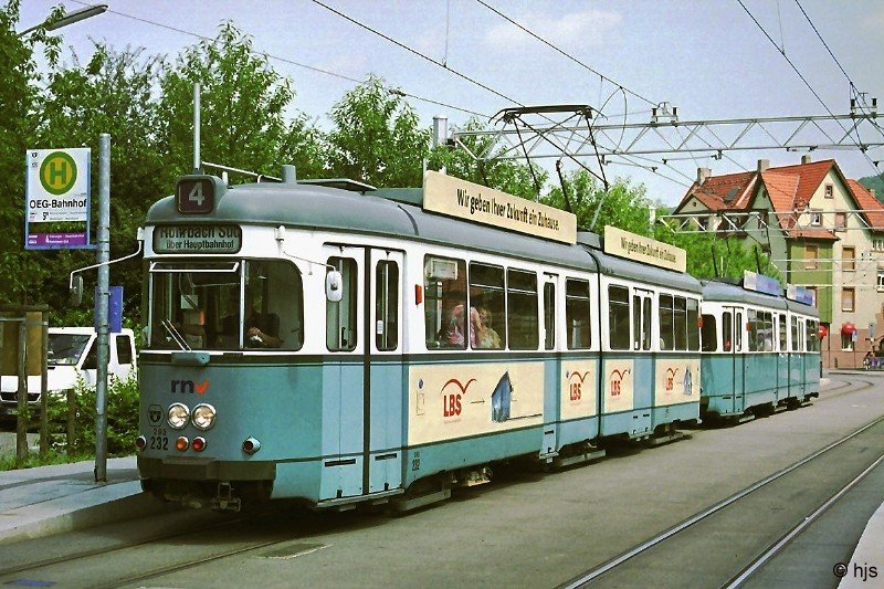 Immer im Doppelpack: GT6-Doppeltraktion 293 (232+239) in Handschuhsheim (6. Juli 2006).