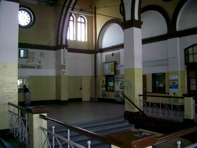 Auf der einen Hälfte des Personenbfs in Zary sieht man ein wenig vom Güterteil mit Containeranlage