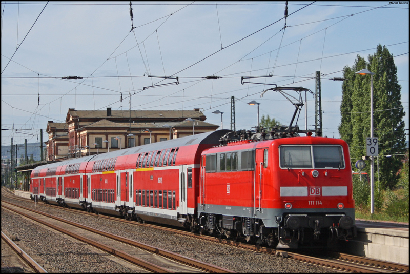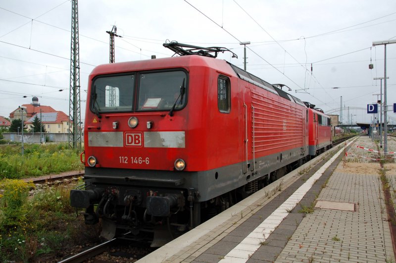 112 146 steht zusammen mit 111 159 im Hbf Dessau. Fotografiert am 03.08.09.