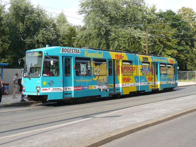 NGT 6 DD der Linie 4, Weinböhla-Laubegast, hier zw. Stienbacher Weg und Auerstraße