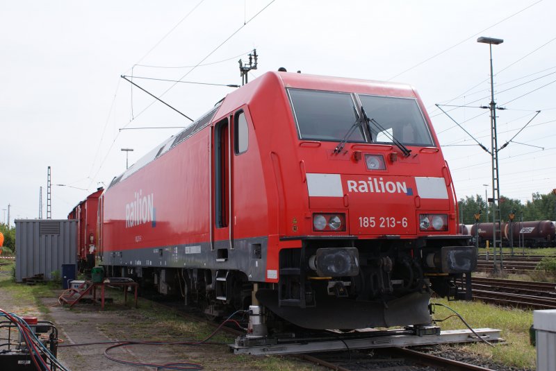 Am 22.08.09 fährt die 185 013-0 mit ihrem kurzen Güterzug durch den Bahnhof Gießen in Richtung Süden.