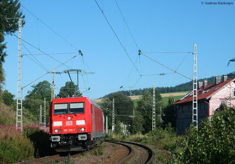 185 376-1 mit dem CS 61763 (Hausach-Schwennigen) am ehemaligen Bf Somemrau 6.8.09