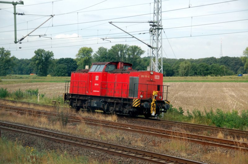 203 111 steht am 03.08.09 vor einem roten Signal und wartet auf die Weiterfahrt.