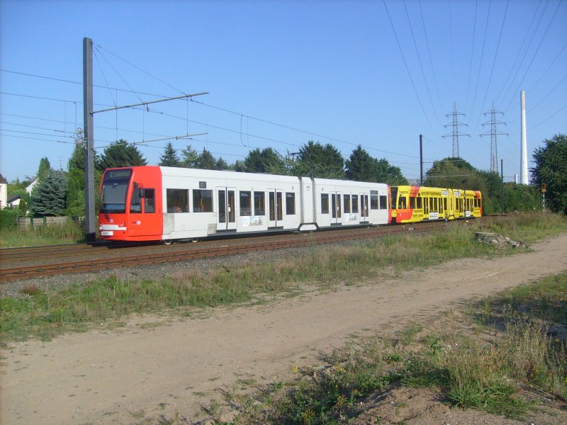 4059 + 4064 - Linie 12 - Merkenich Mitte - 24.08.2009: DIese zwei Bombadier- Stadtbahnwagen von 1996 haben indies ihre etwa 45-minütige Reise gerade erst begonnen, in Kürze werden sie Merkenich Mitte erreichen.
