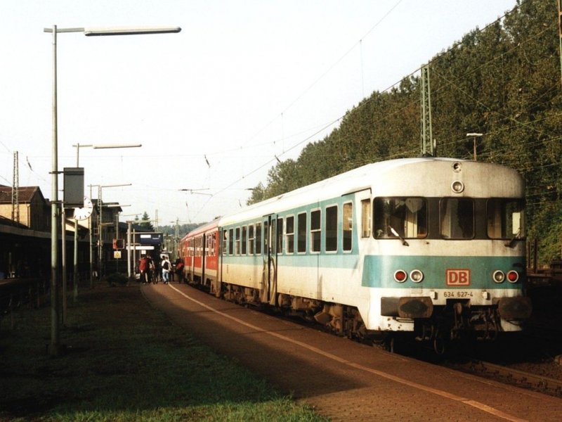 634 627-4/924/624 649-0 mit RB 73656 (RB 84 Egge-Bahn) zwischen Holzminden und Paderborn auf Bahnhof Altenbeken am 13-10-2001. Bild und scan: Date Jan de Vries.