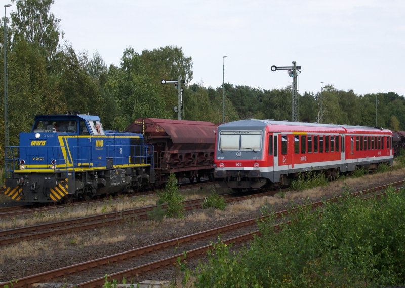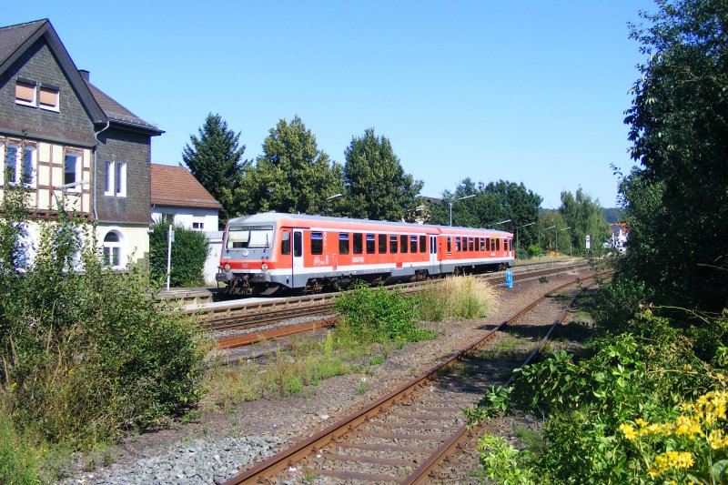 Am 24.08.09 ist der Triebzug 628 450 als RB 25254 nach Gießen im Einsatz und wartet in Großen-Buseck auf die Zugkreuzung ab ,damit er in ein paar Minuten weiter nach Gießen fahren kann.