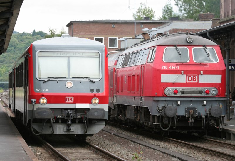 Dieselmeeting in Gerolstein, die 218 414-1 von und 928 490 nach Trier, aufgenommen am 12.08.2009