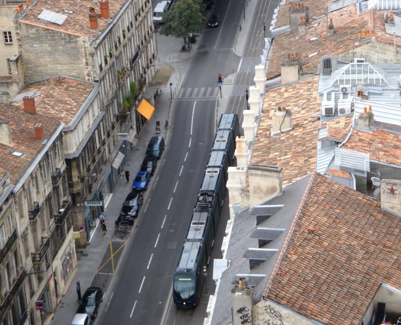 Es handelt sich dabei um Odysseum, die Endhaltestelle der Linie 1 Mosson - Odysseum. Insgesamt gibt es 2 Linien, eine dritte ist aber in Planung. Die Triebwagen haben alle die gleiche Baureihe, jedoch mit unterschiedlichen Farbmustern, die ihre jeweilige Linie symbolisieren.