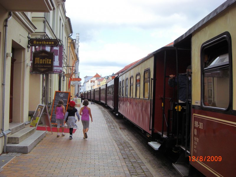 Mecklenburgische Bäderbahn "Molli" als MBB 14626 nach Kühlungsborn West in Bad Doberan Stadtmitte, 14:45 Uhr 12.08.2009