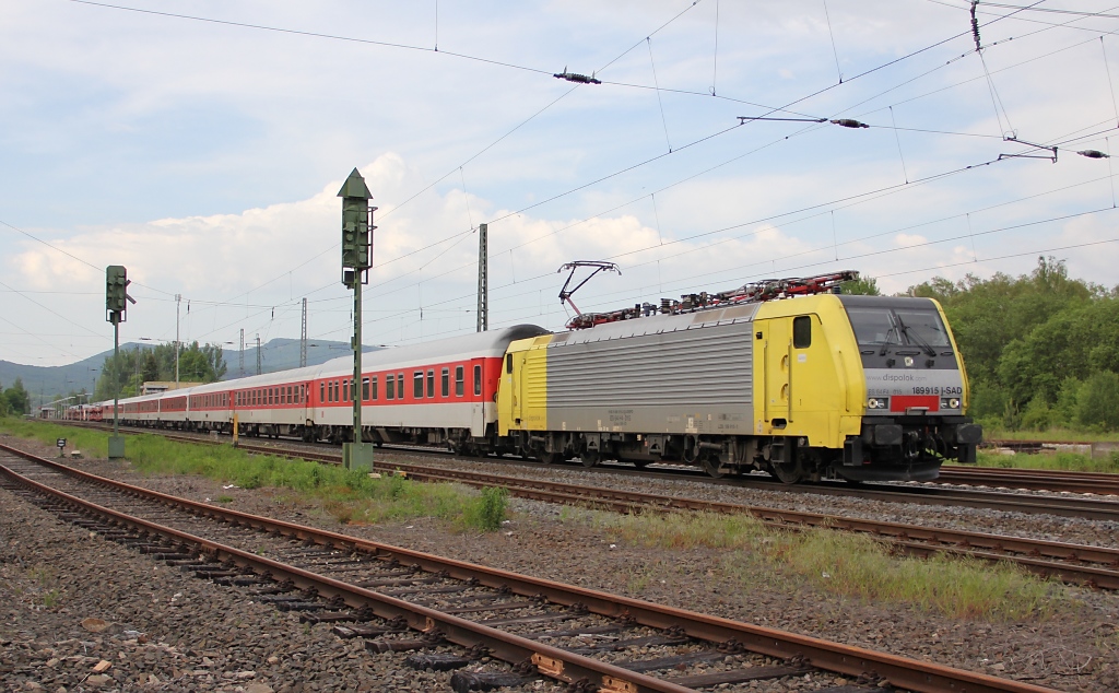 189 915 (ES 64 F4-015) mit AZ in Fahrtrichtung Süden. Aufgenommen am 20.05.2012 in Eschwege West.