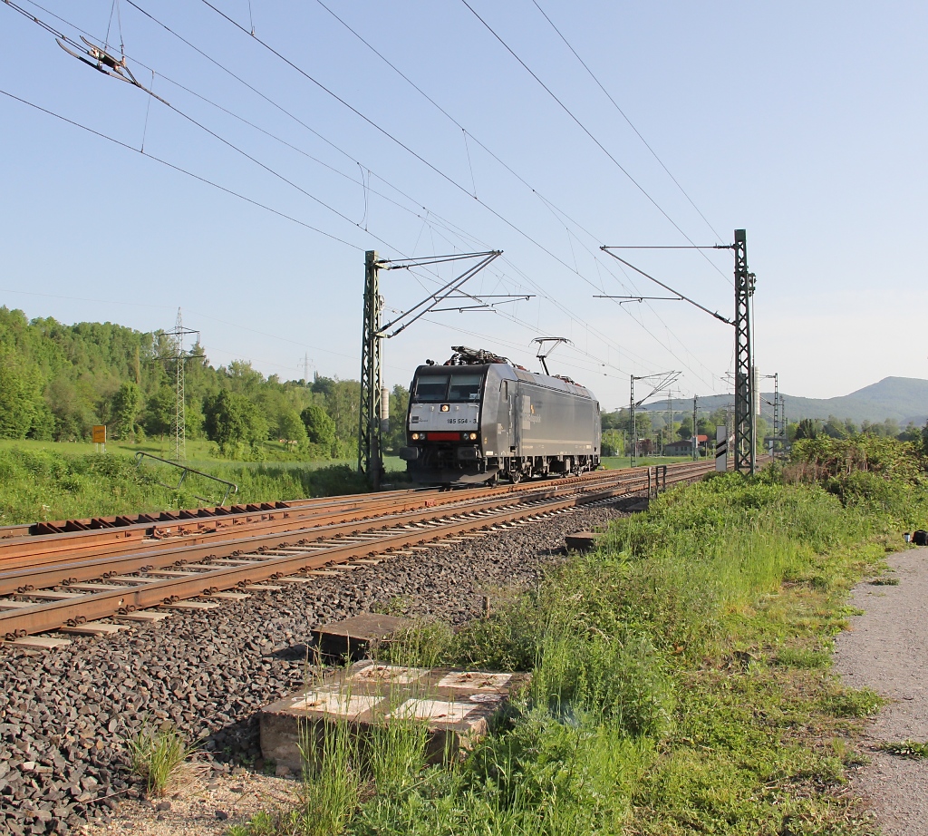 Allein auf weiter Flur war am 22.05.2012 die 185 554-3 als Tfzf in Richtung Süden. Aufgenommen an der Nordeinfahrt nach Eschwege.