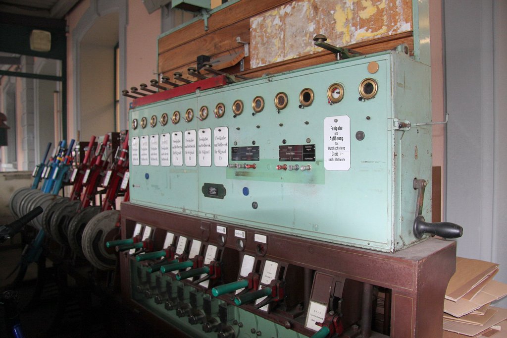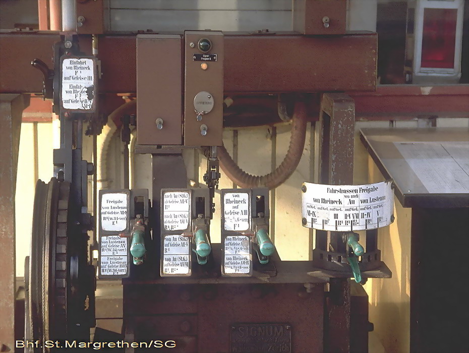Alte Stellwerktechnik im Bahnhof St.Margrethen 1994(Archiv P.Walter)