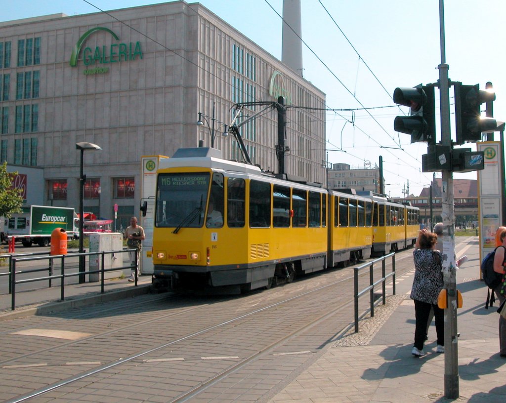 Berlin BVG SL M6 (KT4D) Karl-Liebknecht-Strasse / Memhardstrasse am 25. Juli 2012. - Wegen Gleisbauarbeiten am Knotenpunkt Mollstrasse / Otto-Braun-Strasse und Greifswalder Strasse wurden die MetroTramlinien 5 und 6 vom 17. bis 30. Juli über Mollstrasse und Karl-Liebknecht-Strasse umgeleitet.