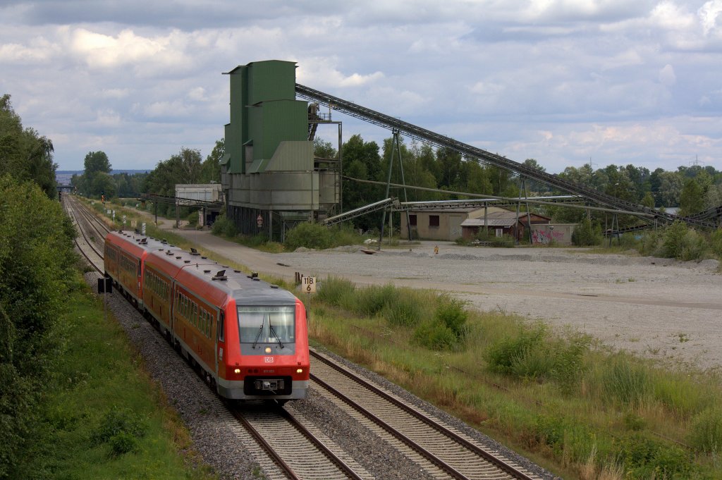 Der 611 033 fuhr am 16.07.2012 durch Laupheim West, am alten Schotterwerk vorbei.