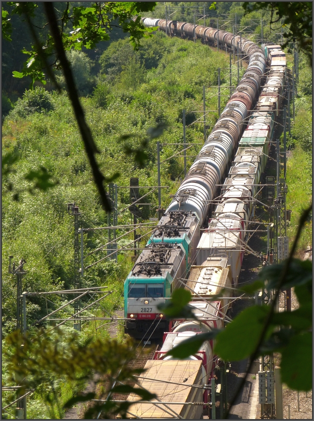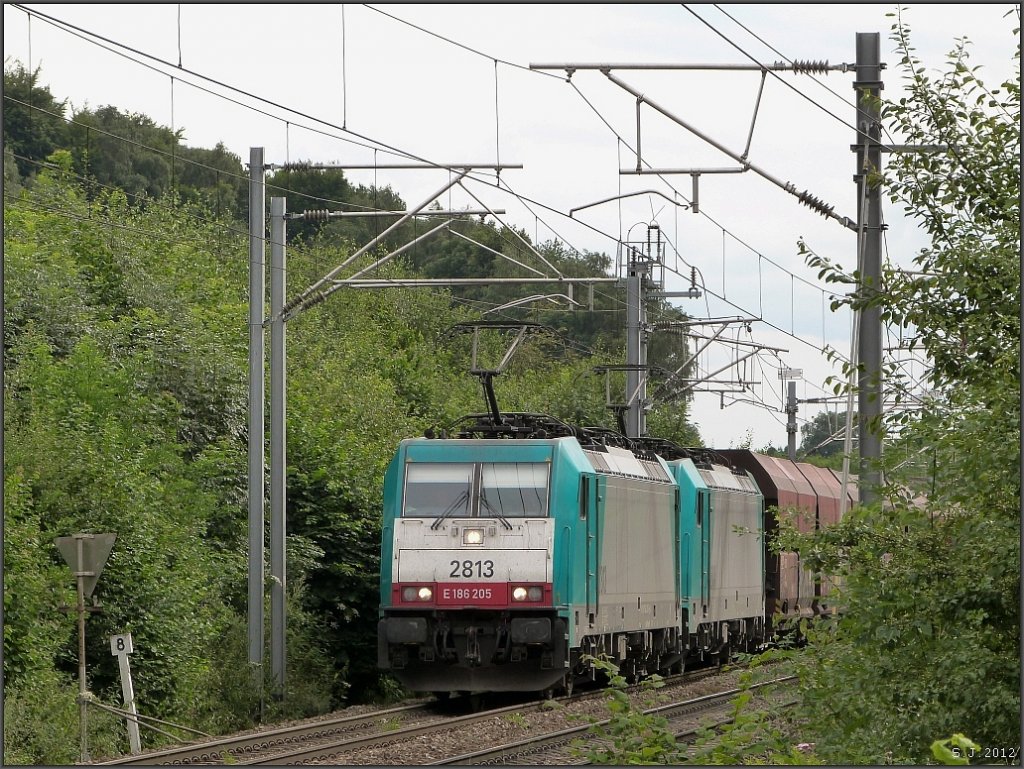 Spätnachmittags antreffen. Hier zu sehen die Traxx (Cobras), die belgischen E 186.