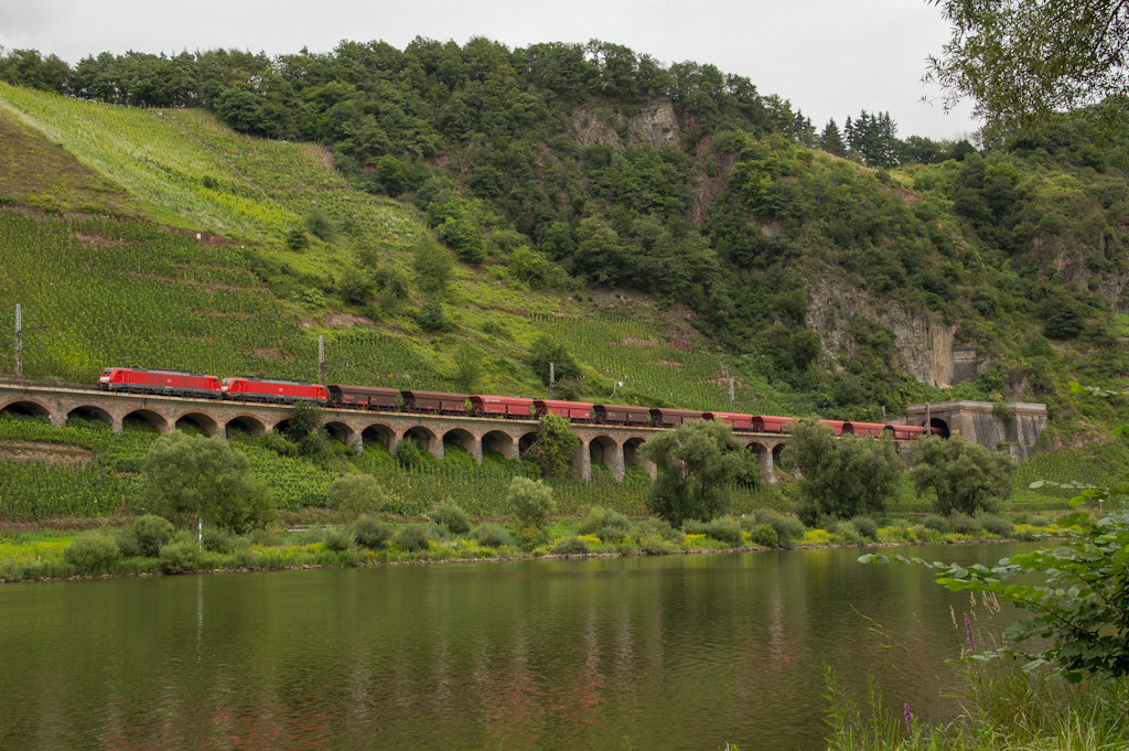 Ein unbekannt gebliebenes 189er Päärchen auf dem Hangviadukt in Pünderich.(2.8.2012)