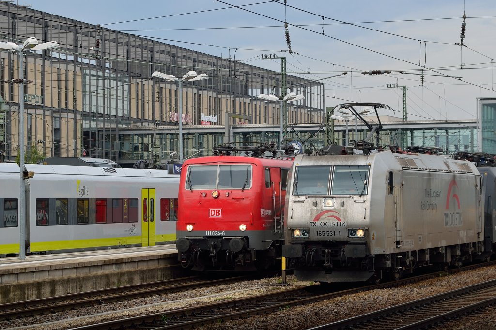 Mal kurz nochmal die Uhr 5 Minuten zurückgedreht: Da schmuste 111 024-6 mit unserem Lokzug.. Na erkannt? Sie war an diesem Morgen mit dem "Radl-Express" in Regensburg.