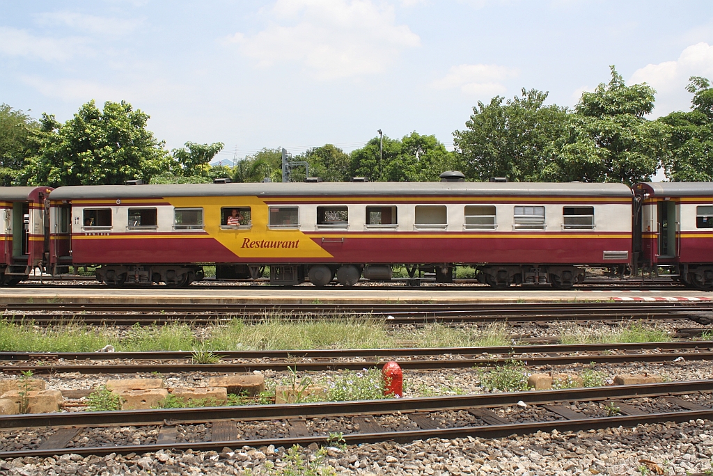 บกข. 1018 (บกข. =BRC./Bogie Buffet Carriage, Bogie Restaurant Car) am 28.Mai 2013 im Bf. Hua Lamphong.
