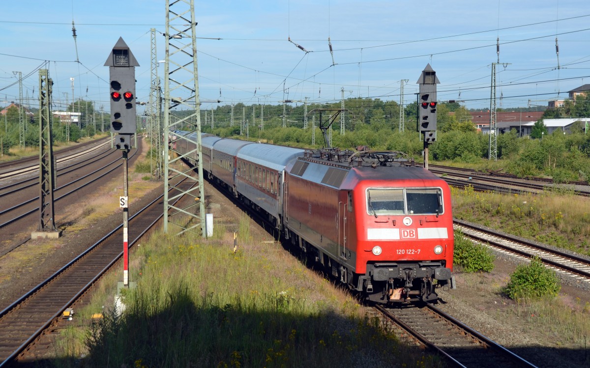 120 122 führte am Morgen des 03.07.14 den CNL 478 aus Zürich durch Buchholz(Nordheide) nach Hamburg-Altona.