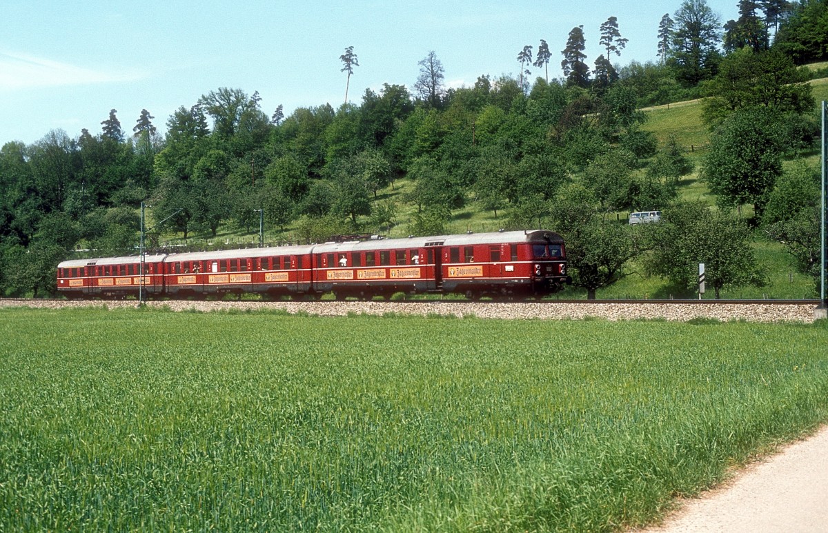 Am 31.07.14 fuhren VS 14 und VT 8 der SAB als SAB-Sommerferien-Express (Münsingen-Schelklingen) Hier bei der Ausfahrt Münsingen.