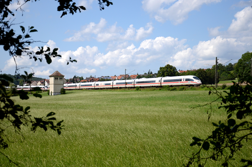 Am 4. August 2014 begegneten mir zwischen Lonsee und Westerstetten die beiden Triebzüge 352 "Mönchengladbach" und 336 "Ingolstadt" als ICE 517 auf ihrem Weg von Dortmund nach München.