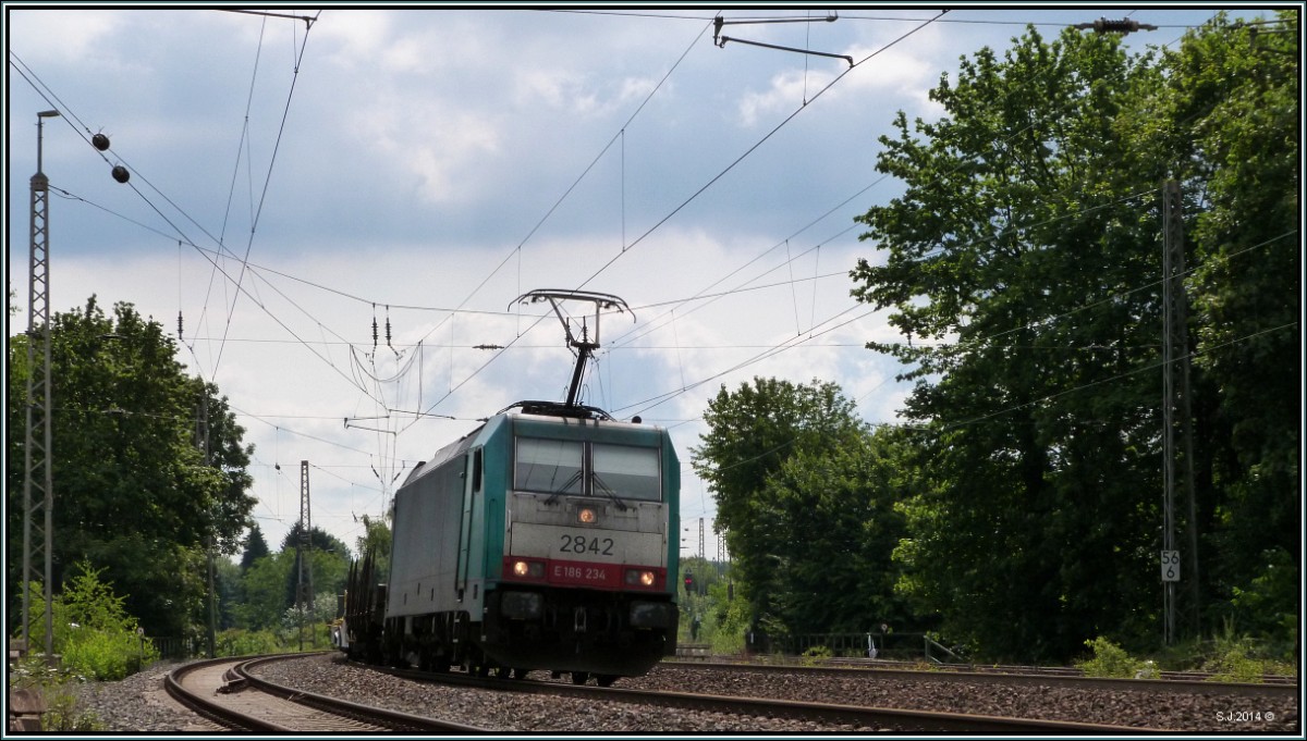 Bildlich eingefroren wurde diese belgische E-186 (Cobra)im Gleisbogen bei Eschweiler auf der Kbs 480 am 30.Juli 2014.