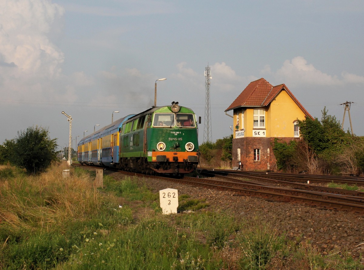 Die SU 45-115 mit einem R nach Kostrzyn am 02.08.2014 bei der Ausfahrt aus Stare Kurowo.