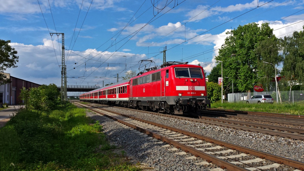 Einfahrt am 14.05.2014 von der Freiburger 111 050-1 mit der RB 26581 (Offenburg - Schliengen) in Müllheim (Baden).