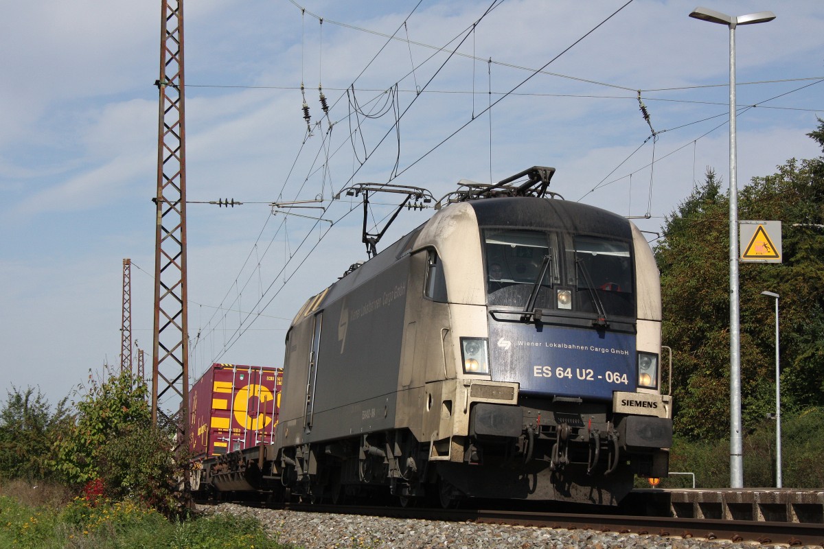 MRCE Dispolok/ERS bzw WLC ES 64 U2-064 am 27.9.13 mit einem KLV in Retzbach-Zellingen.