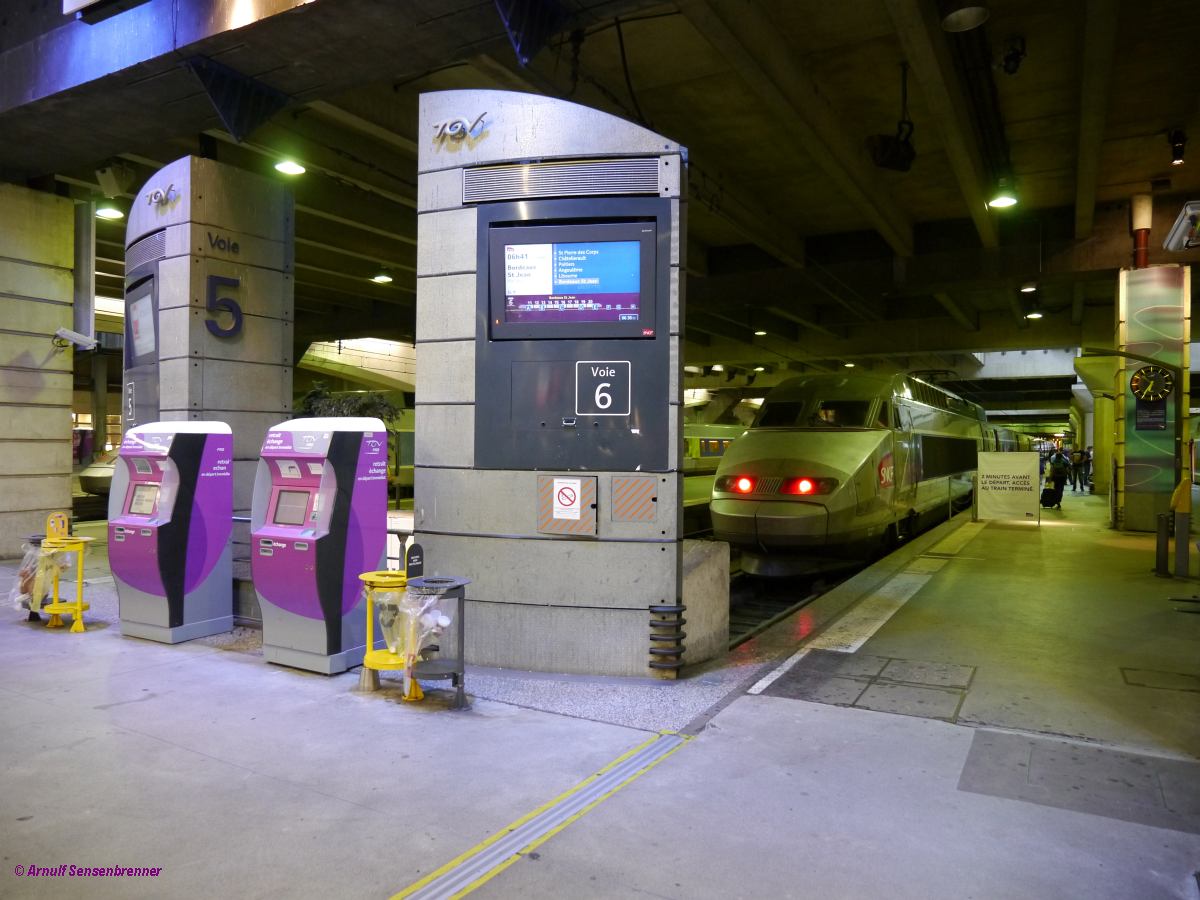 Pünktlich Einsteigen Bitte! - Zwei Minuten vor Abfahrt wird der Zugang am Bahnsteig gesperrt. Noch sind es 6 Minuten und es ist noch ein wenig Zeit. Frühmorgendliche Abfahrt mit dem Zug TGV8403 (ab Paris Montparnasse 06:41)nach St.Pierre des Corps - Bordeaux.
