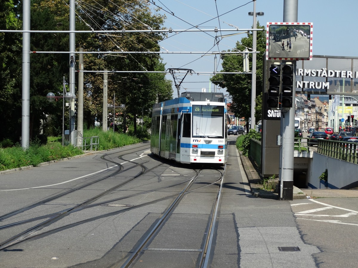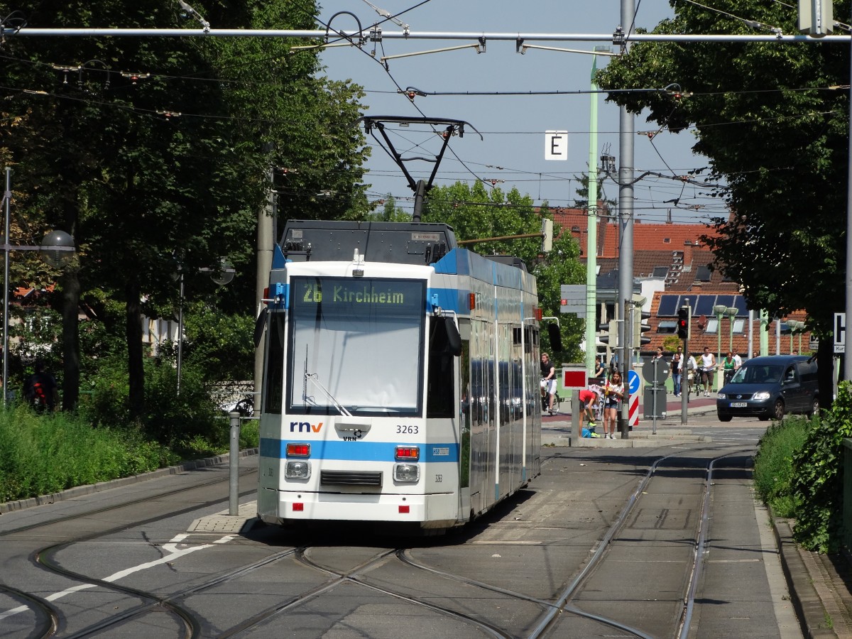 RNV MGT6D Wagen 3263 steht am 25.07.14 in Heidelberg