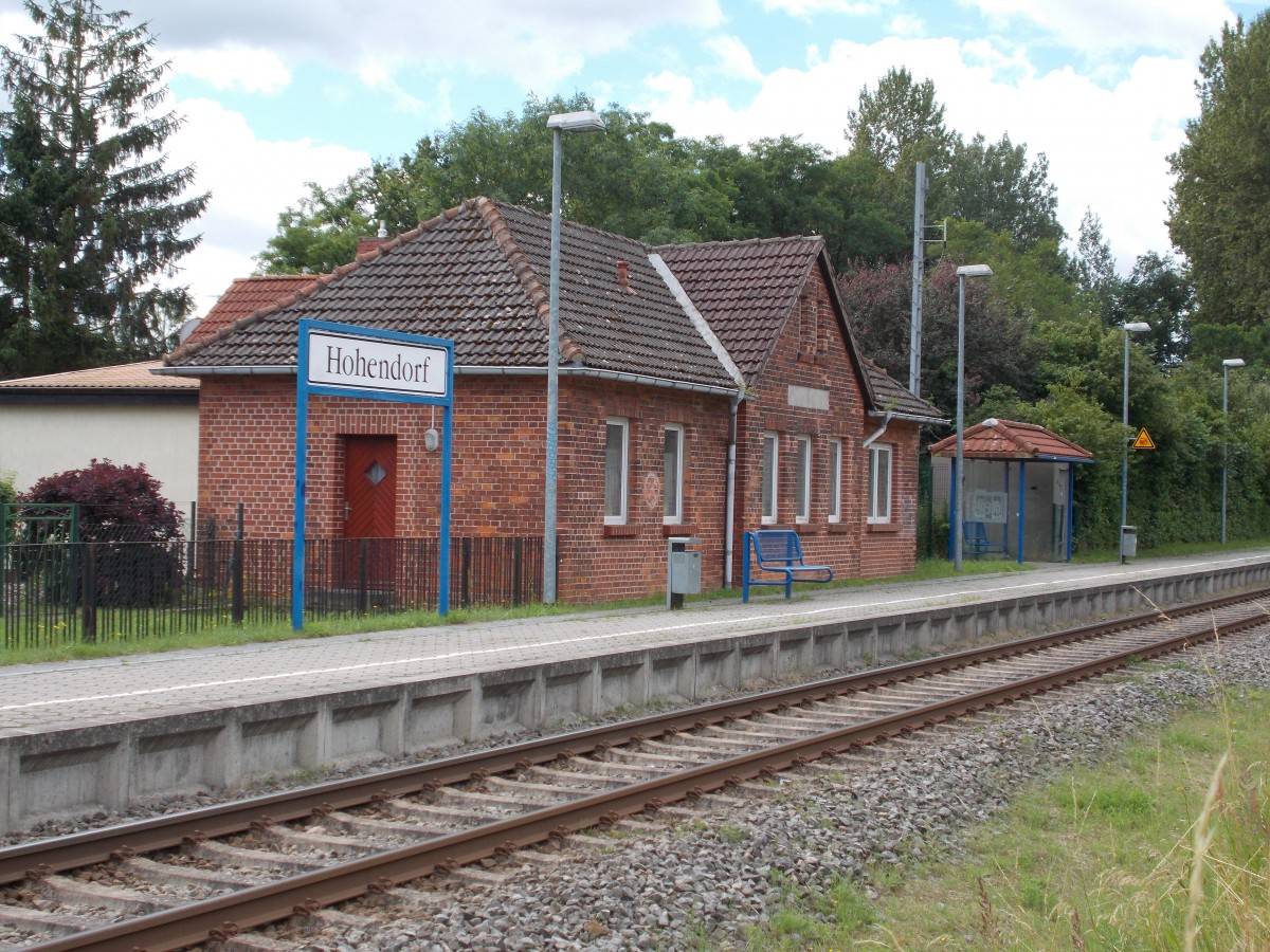 Stationsgebäude von Hohendorf(Strecke Züssow-Wolgast)am 13.Juli 2014.