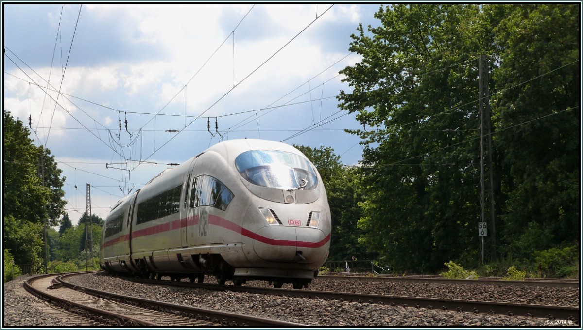 Unterwegs nach Brüssel ist dieser ICE 3. Hier zu sehen im Gleisbogen bei Eschweiler auf der Kbs 480 am 30.Juli.2014. Szenario bildlich festgehalten vom Parklatz aus.