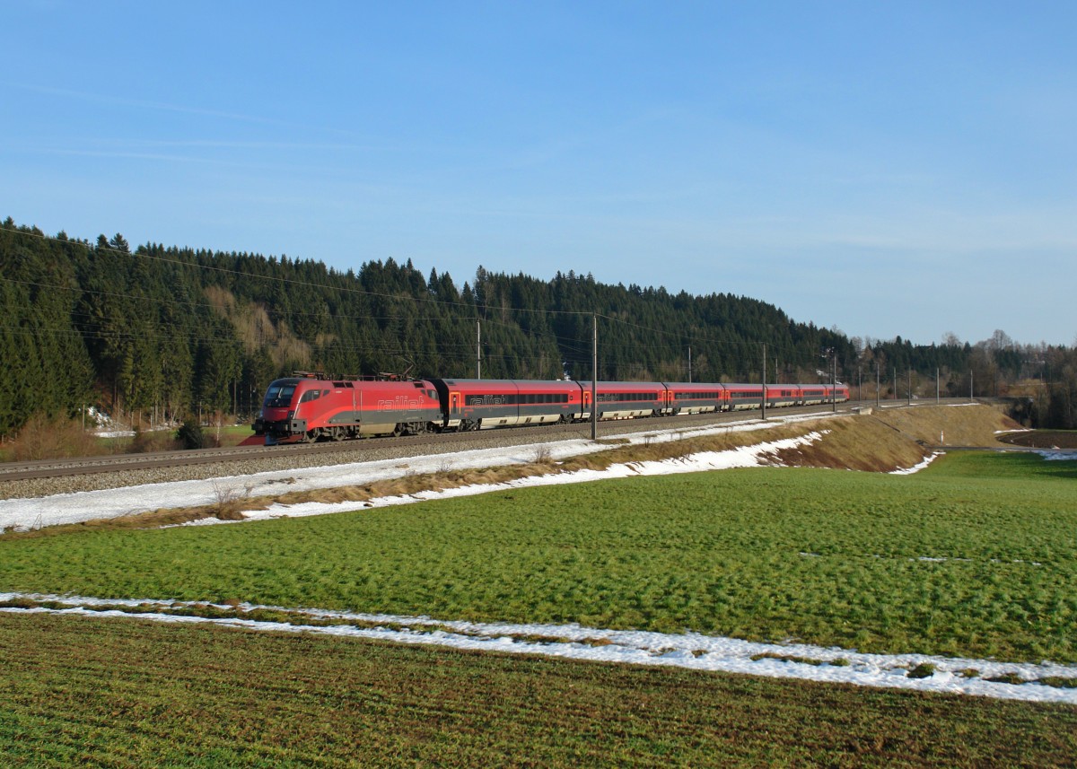 1116 210 mit einem Railet am 24.12.2012 bei Pöndorf.