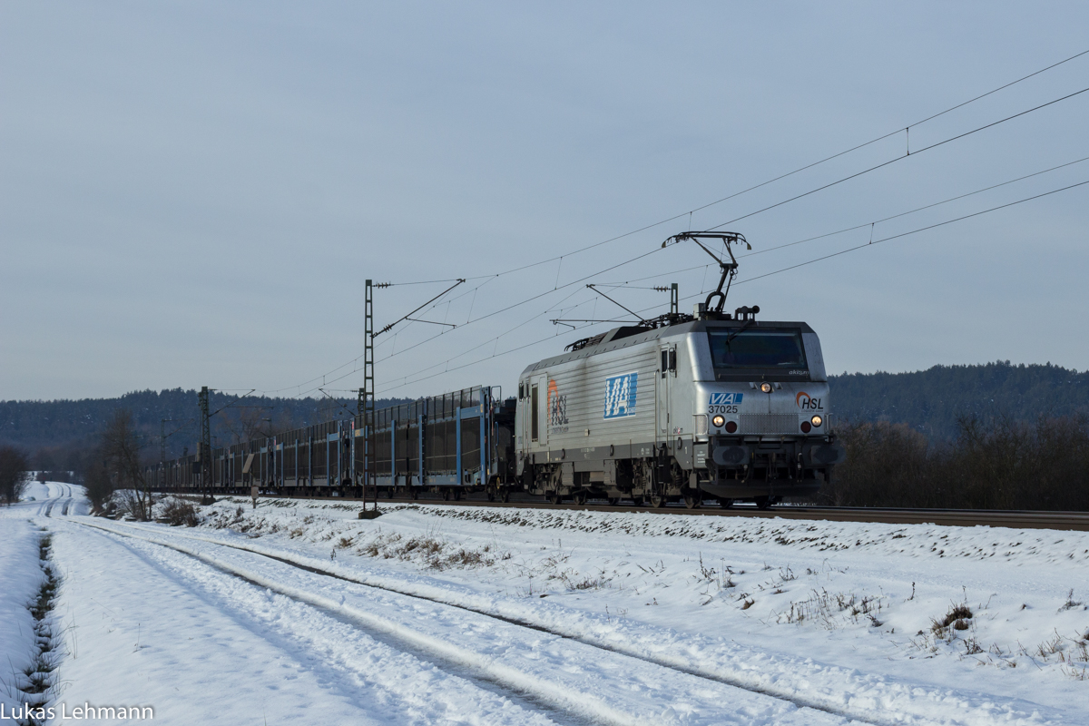 CBR/TWE E37 526 am 22.2.14 mit einem Stahlzug in Krefeld-Linn.