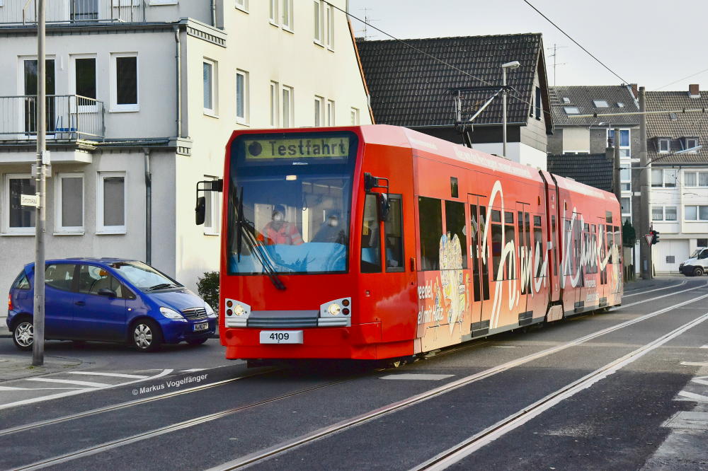 2425 (ex 2195) wurde als siebter B-Wagen der Serie 2100 saniert und zur Serie 2400 umgebaut. Hier zu sehen bei seiner ersten Ausfahrt nach seiner Sanierung auf dem Simonskaul am 22.01.2015.