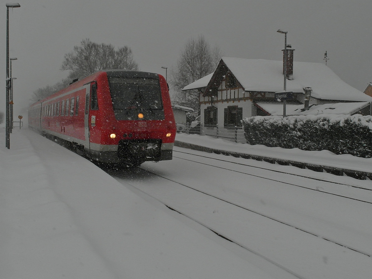 Anstatt mit Doppelstockwagen und einer schiebenden 218er sind am 30.12.2014 bei Eriskirch-Moos zwei Triebwagen der Baureihe 650 als IRE nach Lindau unterwegs.