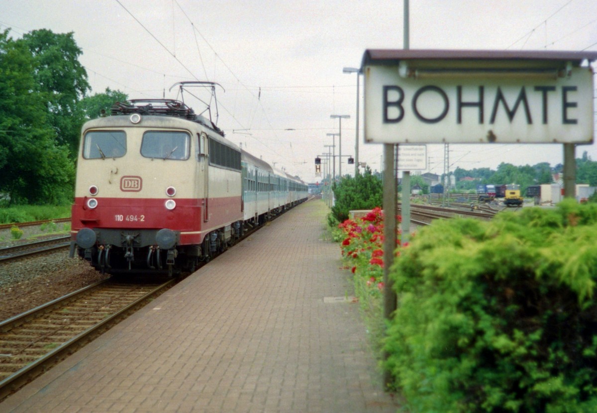 110 494 mit E 3374 (Bremen Hbf–Osnabrück Hbf) am 18.06.1993 in Bohmte