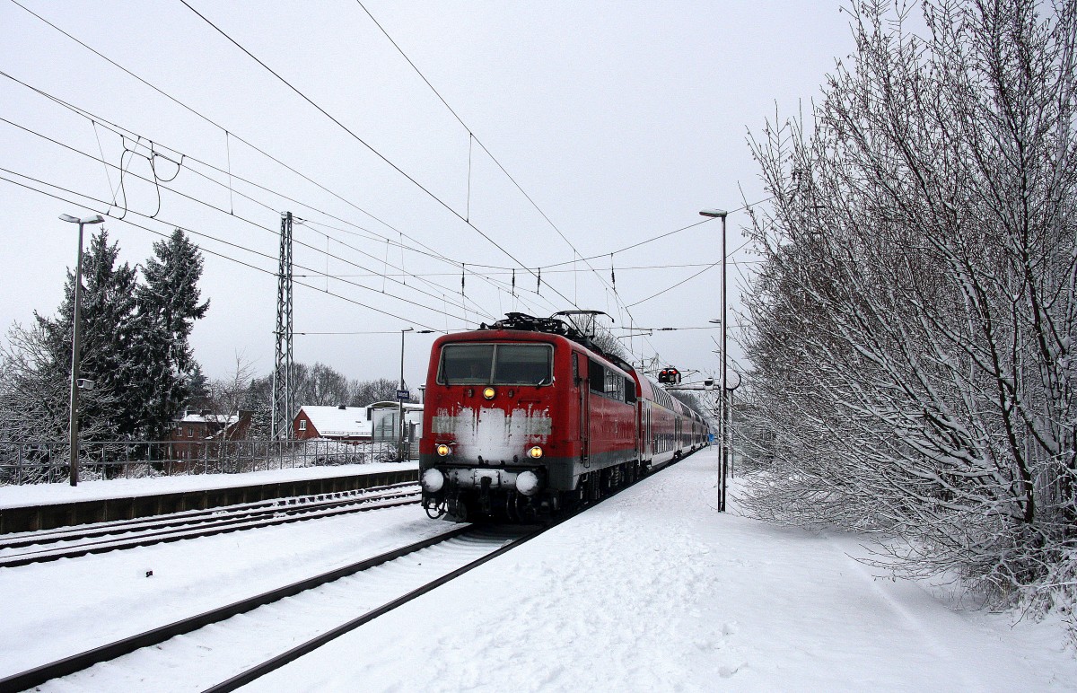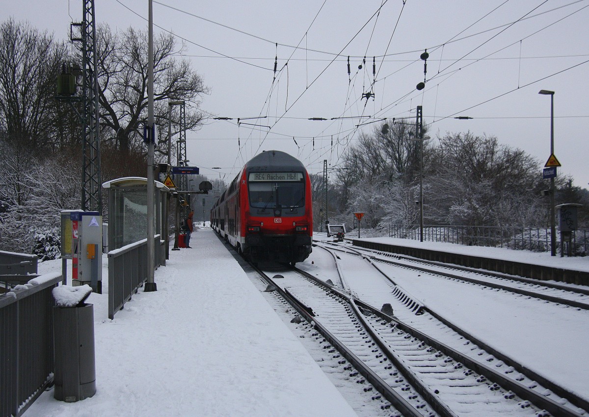 111 116 DB kommt bei Schnee die Kohlscheider-Rampe auf dem falschen Gleis hoch aus Richtung Neuss,Herzogenrath mit einem RE4 aus Dortmund-Hbf nach Kohlscheid und fährt in Kohlscheid ein und Endet in Kohlscheid wegen Brückenarbeiten an der Strecke zwischen Aachen und Kohlscheid.