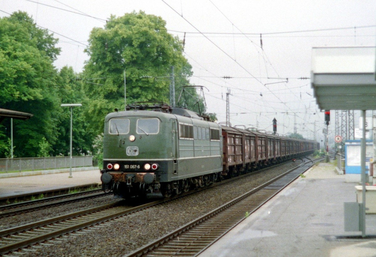 151 067 mit Güterzug Richtung Bremen am 19.06.1993 in Syke