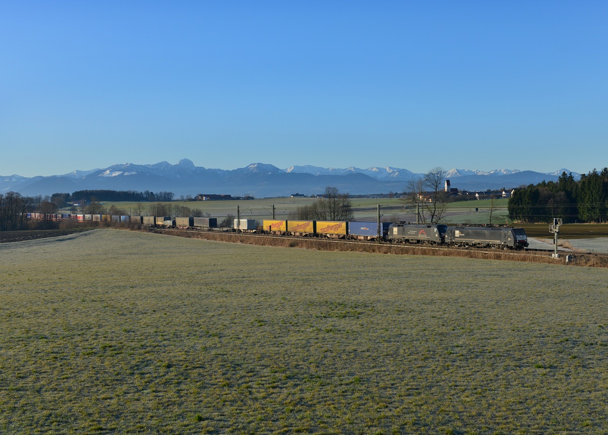 189 997 + 182 510 mit einem KLV am 25.02.2014 bei Haus.