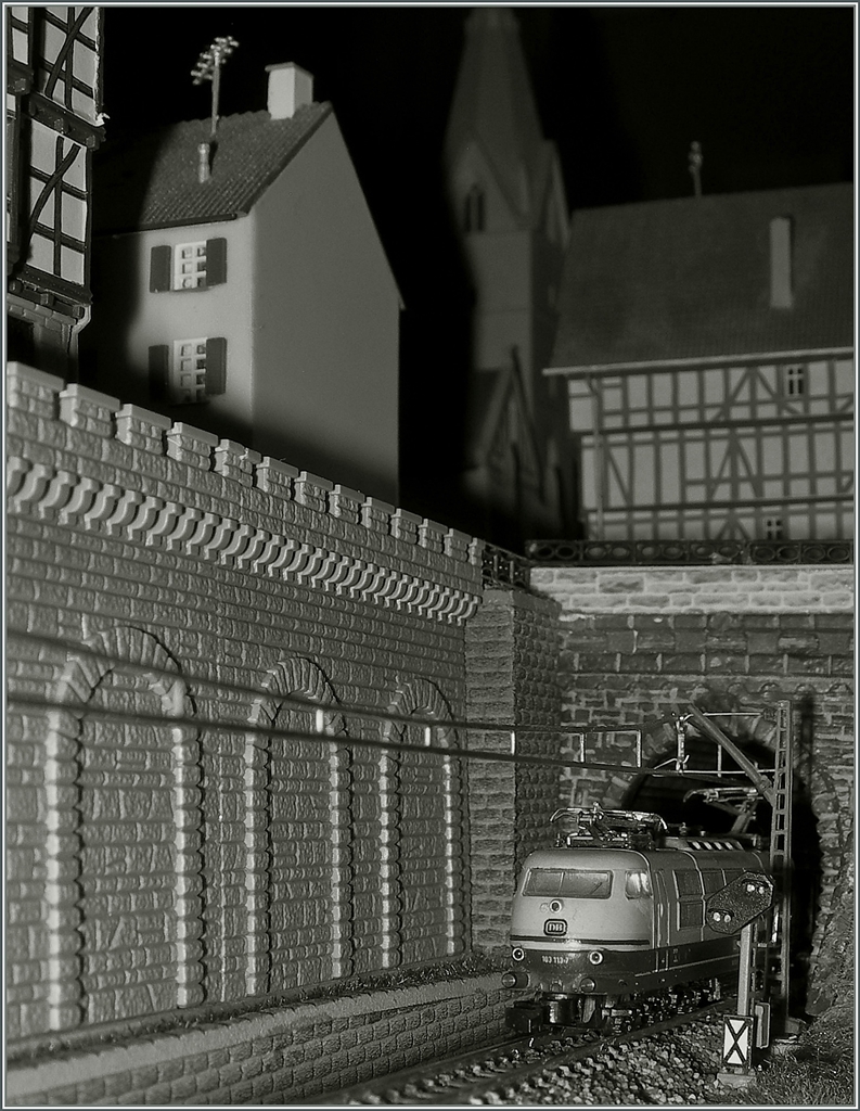 Die Märklin mini-club Z Spur E 103 113-7 auf meiner Z-Bahn Anlage.