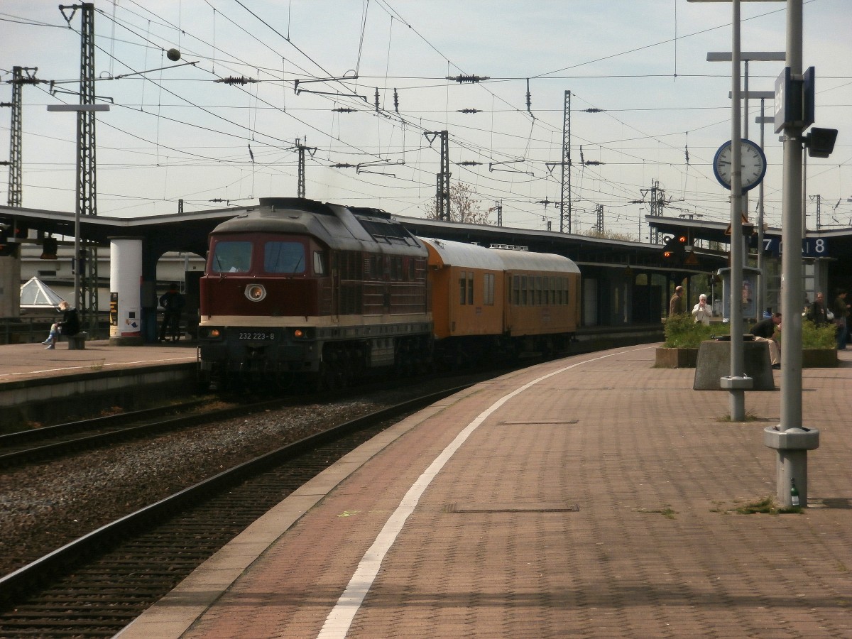 Nochmals rausgekramt. 232 233-8 kam mit 2 Bauwagen der Bahnbaugruppe durch Neuss gefahren. Gleich wird sie auf ein Abstellgleis fahren wo ebenfalls ein weiterer Bauzug der gleichen Reihung und Wagen und Lok steht.