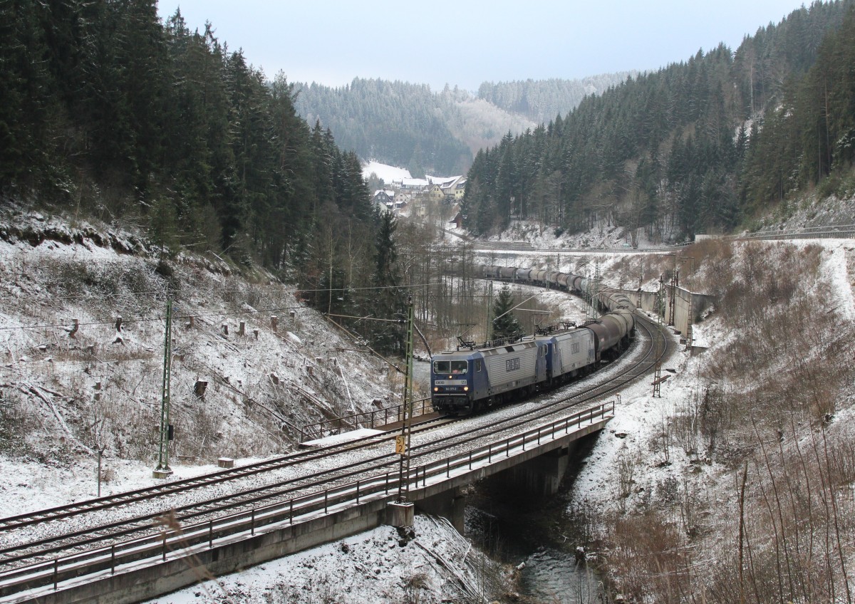 101 131-1 DB auf der Frankenwaldrampe bei Steinbach am 23.01.2015.