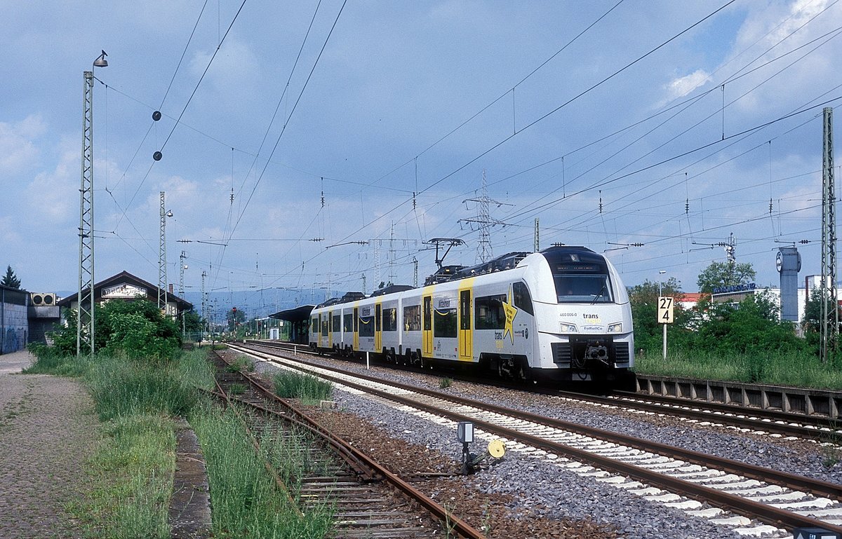 Die aus Österreich stammende 378.78 bringt am Nachmittag des 30.7.17 den Zug der Kandertalbahn nach Kandern. Hier passiert sie gerade die Trapeztafel, die das Einfahrsignal von Haltingen ersetzt.