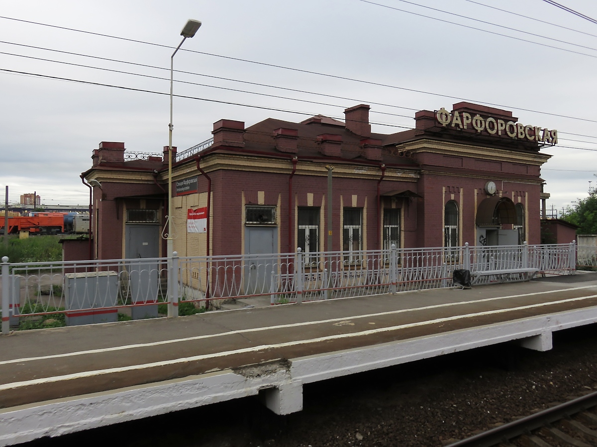 Kurzer Halt in Фарфоровская (Farforovskaya), dem einzig hübschen Haltepunkt an der Strecke von St. Petersburg nach Kolpino, 16.7.17