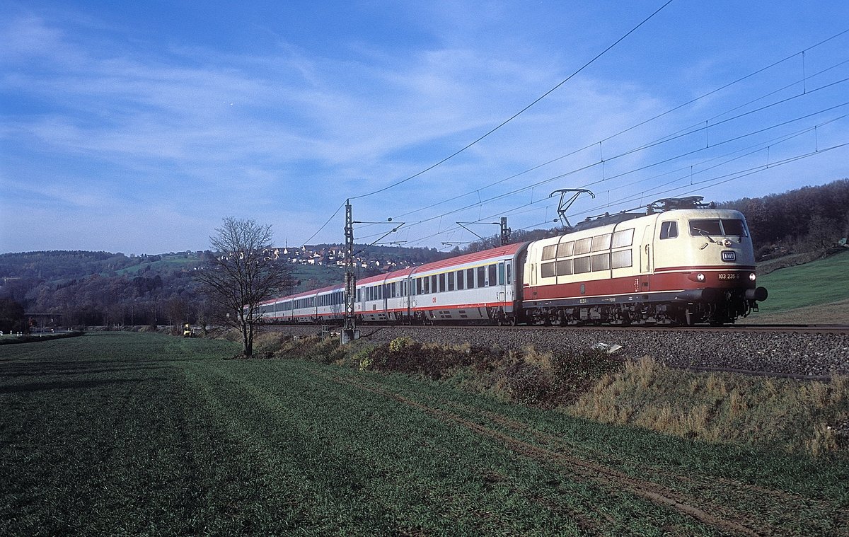 103212 fährt am 26.4.1990 mit dem IC 816 "Gorch Fock" nach Kiel in den HBF Köln ein.