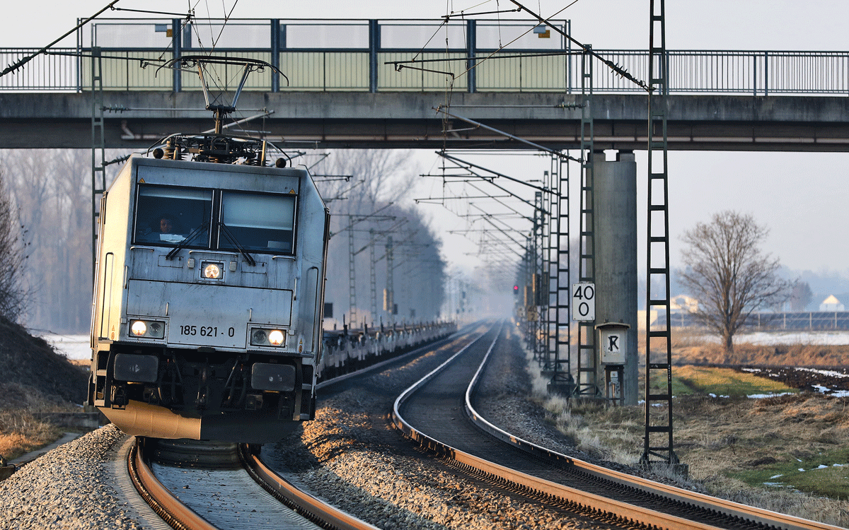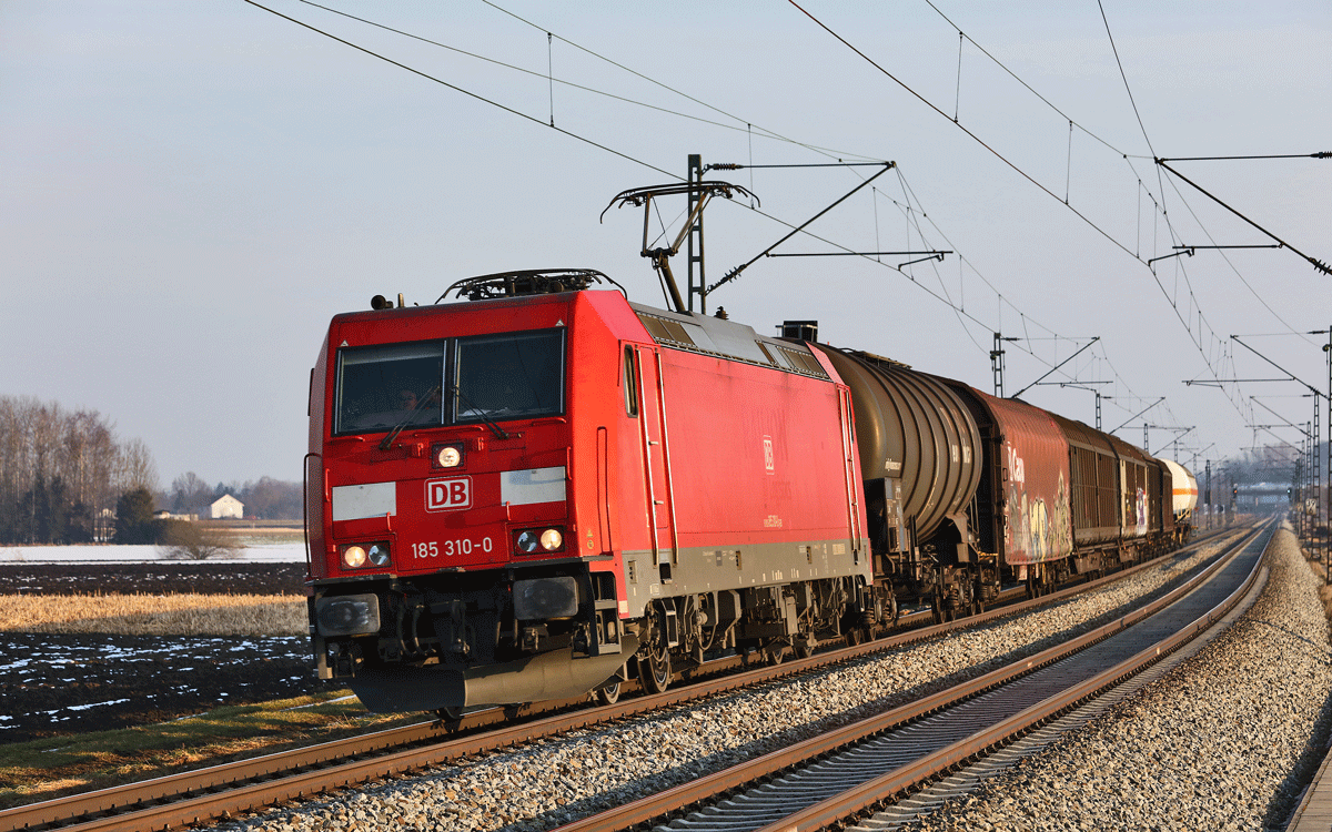 185 310-0 fährt am 11.2.2017 mit einem geringen Mischer in Niedermünchsdorf vorbei.
